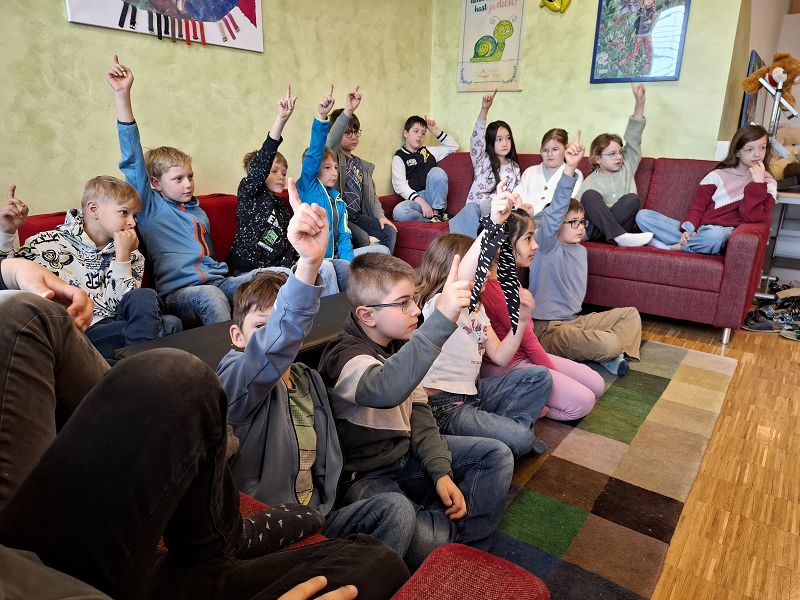 In der Bibliothek konnte gemütlich gelauscht werden und danach gab es Rätsel und Bastelarbeiten zum jeweiligen Buch. Beim Beantworten kniffliger Fragen zu den Texten gab es auch süße Belohnungen für die eifrigen Zuhörerinnen.